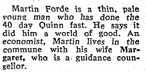 Martin Forde is a long-time associate of “Dr” Tony Quinn, as reported by prominent Journalist, and figurehead of the Irish women”s movement, June Levine in 1974: