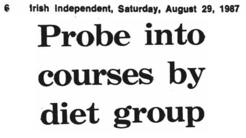In 1987 the Irish Independent reported that “the ethics committee of the Irish Medical Organisation and the council of the Irish College of General Practitioners were to look at the courses advertised by the Irish Association of Holistic Medicine”.